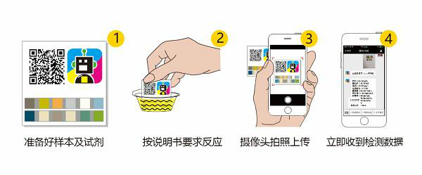 如上图所示,用户只需将检测试剂浸入检测样本中,或者将检测样本滴在试剂上,按照说明书反应后,用手机拍照并扫描二维码上传至云检测系统,5秒后便可收到对应的检测结果。随时随地自检不再是梦,出报告的时间也缩短至几秒。据了解,该系统现已能够提供检测包括体征检测、尿常规检测、生化检测、免疫检测、特定蛋白分析、分子检测等在内的80%的项目,能够满足大多数IVD检测需求,并且检查结果符合医用标准。