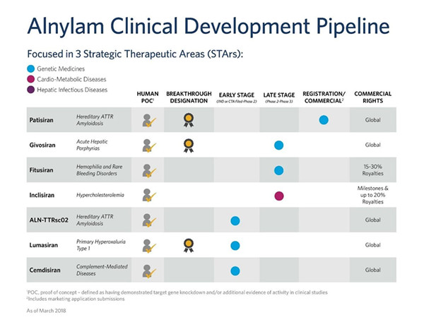 “在Alnylam,我们致力于推进RNAi疗法,将其作为一类新药,治疗几乎没有选择的患者,”Alnylam首席执行官John Maraganore博士说:“当我们将Alnylam转向罕见病领域时,与再生元这样的科学领袖合作研发针对NASH这类流行疾病的创新药物,其前景是非常具有战略意义的。我们相信RNAi作用机制提供的精确特异性,和我们专有的行业领先的用于输送到肝脏的GalNAc偶联物方法,是开发针对NASH遗传学验证靶点的RNAi疗法的无与伦比的组合。”