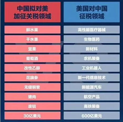 白宫预计,新的关税可能影响到约1300个自中国进口的商品。同时美国财政部也将在60天内拿出对中资投资美国科技领域设限的方案。有消息透露,提高关税的行业包括自动化工具和机器人、航空航天和航海设备、新能源汽车、铁路、农业和生物医药。而中国也对此迅速做出反应,商务部网站显示,3月23日,商务部发布了针对美国进口钢铁和铝产品232措施的中止减让产品清单并征求公众意见,拟对自美进口部分产品加征关税,以平衡因美国对进口钢铁和铝产品加征关税给中方利益造成的损失。